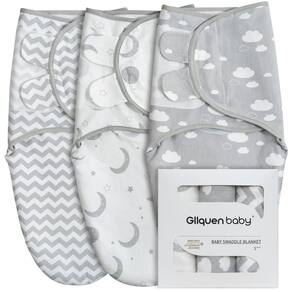 Com foco no conforto e segurança, nossos cueiros foram acabados com os mais altos padrões. O conjunto de faixas multipack é ótimo para novas mães e pais, garantindo que sempre haverá um ou dois panos extras à mão. Todos os cueiros possuem duas abas de fecho aderente para proteger rapidamente o seu pequeno. Macio e confortável, seu bebê sempre estará confortável, confortável e elegante enquanto vai dormir! A tira de fecho aderente permite fácil ajuste e conveniência. Enfaixar seu bebê nunca foi tão fácil. Este cobertor para recém-nascido de 0 a 3 meses é tudo o que você precisa para uma boa noite de sono do seu recém-nascido. Nosso swaddler fácil de ajustar é lavável na máquina e vem em 3, então quando um estiver sujo o outro pode ser lavado! - Enjoy the Night: When your baby is tightly wrapped in our swaddle sleep sack, it feels like sleeping in the arms of mom. The womb-like comfort reduces many babies' startle reactions and brings more rest time for parents - Super Soft Baby Swaddle: The newborn swaddle is made of soft pure cotton fabric. The lightweight fabric can prevent overheating. It is breathable, soft and stretchy. Gllquen baby swaddle sack protects your baby to sleep peacefully - Adjustable Fit: Compared with traditional baby blankets, Gllquen baby sleep sack has a loose neckline and adjustable tabs, which allows you to protect your baby from rolling around while keeping your baby safe and not strangling his neck - Durable: The two-way stretch knit fabric prolongs the life of the sleep swaddle. It is machine washable and durable. It is recommended that the water temperature does not exceed 30? and tumble dry on low temperature - Perfect Parenting Companion: Gllquen baby wearable swaddles can perfectly wrap the baby in just 3 steps, which is very friendly to new mothers. It is also a perfect baby shower, birthday or Christmas gift. Baby essential products for new parents