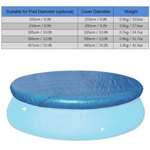 Características em destaque AVISO: Este produto pode conter peças pequenas, que representam um risco de asfixia. Supervisão de um adulto sugerida. 1. Economize tempo: use uma cobertura solar de piscina para reduzir o tempo de limpeza.2. Bom ajudante: Esta cobertura de piscina no solo ajuda a manter sua piscina longe de sujeira, insetos e detritos.3. Multifuncional: também usa a energia l do sol para aquecer a água. Isso permite que você aqueça a água mais rapidamente no inverno e mantenha a temperatura na noite de inverno.Cor: azulMaterial: Vinil Veja menos