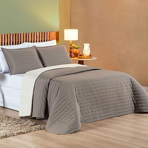 Marca: Bia Enxovais | Estampa: Não se Aplica | Medidas: 01 Cobre Leito 2,40m x 2,20m02 Porta Travesseiros 70cm x 50cm | Número de Peças: 03 Peças | Material: Poliéster | Cor Predominante: Camafeu / Palha | Cama Indicada: Casal