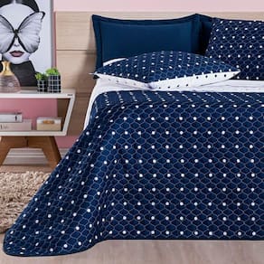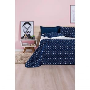Cobre Leito 200 Fios Petit Poá King 03 Peças - Marinho O Cobre leito Petit Poá possui tecido micro percal 200 fios com estampa clássica de bolinha, é totalmente matelado, dupla face, pode ser dos dois lados, acompanha porta travesseiros. Produto composto por: 01 Cobre leito 2,80m x 2,40m02 Porta travesseiros 70cm x 50cm Composição: Tecido: Superior e Inferior 100% PoliésterEnchimento: 100% Poliéster