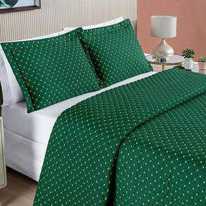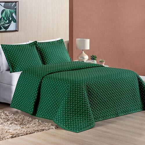 Marca: Bia Enxovais | Estampa: Não se Aplica | Medidas: 01 Cobre Leito 2,60m x 2,40m 02 Porta Travesseiros 80cm x 55cm | Número de Peças: 03 Peças | Material: Poliéster | Cor Predominante: Esmeralda | Cama Indicada: Queen