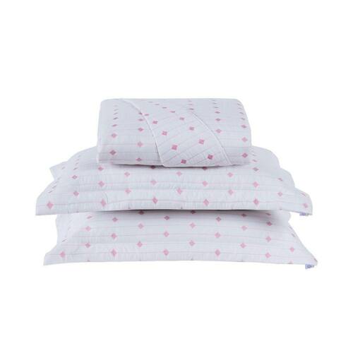 Cobre Leito 3 Peças Casal Percal 200 Fios Decor 100% Poliéster - Branco/pink