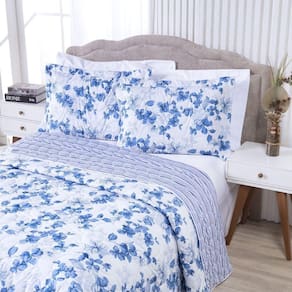 Cobre Leito 3 Peças Queen Percal 200 Fios Colori 100% Poliéster - Flores Azuis Cobre Leito Colori Dupla Face Queen 03 Peças Percal 200 Fios 100% Poliéster Renove o quarto com a alegria e a versatilidade do Cobre Leito Colori! Com estampas modernas e o conforto do Percal 200 fios, ele é perfeito para adicionar um toque de personalidade e aconchego à decoração.