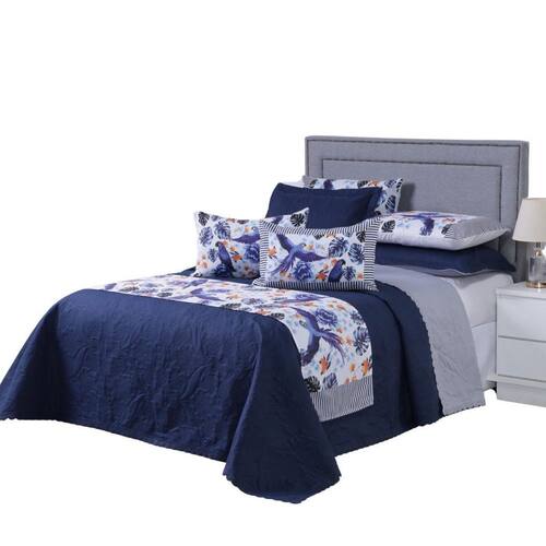 Conteúdo do Pacote: - 1 Cobre leito Casal/Queen 2,60 x 2,40 - 2 Capa de Almofada 0,75x 0,60 - 2 Porta Travesseiro 0,70 x 0,50 - 2 Fronha Estampada 0,70 x 0,50 - 1 Peseira 1,20 x 0,40