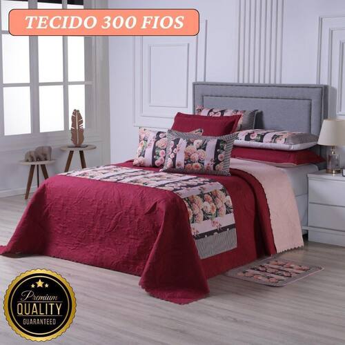 Conteúdo do Pacote: - 1 Cobre leito Casal/Queen 2,60 x 2,40 - 2 Capa de Almofada 0,75x 0,60 - 2 Porta Travesseiro 0,70 x 0,50 - 2 Fronha Estampada 0,70 x 0,50 - 1 Peseira 1,20 x 0,40