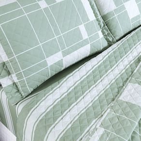 Versatilidade Dupla Face: Com um lado floral e outro geométrico, este cobre leito é dupla face, permitindo que você mude a decoração do quarto com um simples gesto, equilibrando ternura e modernidade.
