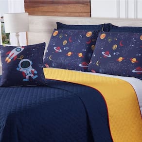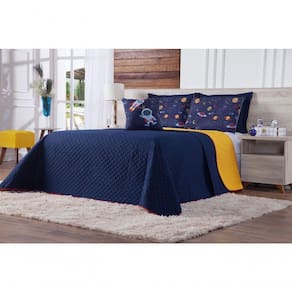 O Kit Cobre leito Astronauta possui estampa do tema, é dupla face, é facil de lavar e secar, vai deixar seu quarto mais aconchegante!