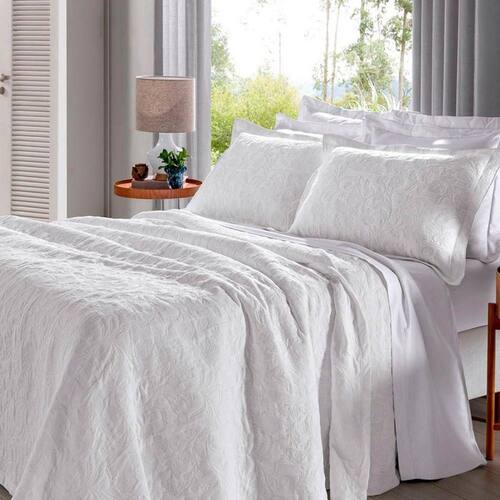 Conteúdo e Medidas: Kit Cobre Leito Jacquard Estampado Dupla Face - Queen - 03 Peças 01 Cobre Leito Jacquard Estampado Dupla Face (2,40m x 2,60m) 02 Porta Travesseiro Jacquard Estampado Dupla Face com Abas(0,50cm x 0,70cm)