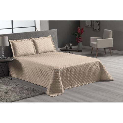 Cobre leito cáqui matelado cama casal padrão 3 peças