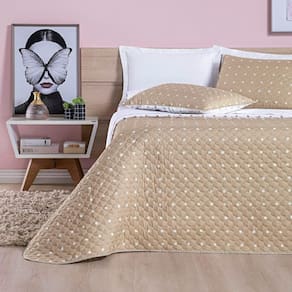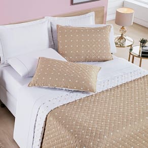 Kit Cobre Leito dupla face confeccionado em tecido Micropercal 200 Fios em matelassê com alto padrão de qualidade, proporcionando conforto e sofisticação. A estampa em Poá dá um charme a mais para esse cobre leito.