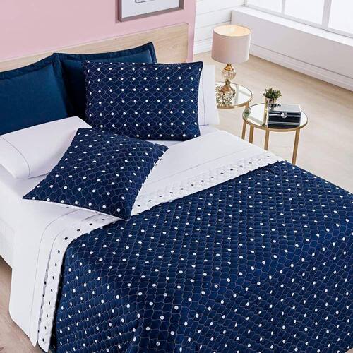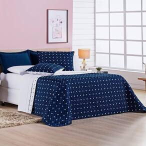 Kit Cobre Leito dupla face confeccionado em tecido Micropercal 200 Fios em matelassê com alto padrão de qualidade, proporcionando conforto e sofisticação. A estampa em Poá dá um charme a mais para esse cobre leito.