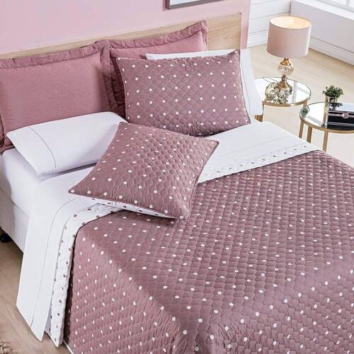 Kit Cobre Leito dupla face confeccionado em tecido Micropercal 200 Fios em matelassê com alto padrão de qualidade, proporcionando conforto e sofisticação. A estampa em Poá dá um charme a mais para esse cobre leito.