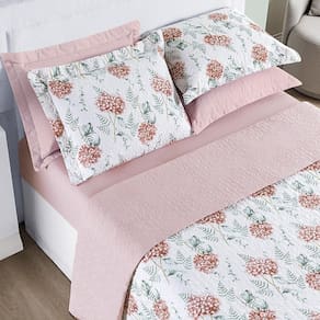 Esta coleção está disponível em quatro estampas: Forest, Hortência, Quadri e Protea , e acompanha dois porta travesseiros com aba americana para um toque charmoso.