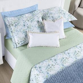 Tecido: Percale 200 fios. Acabamento: Matelado delicado na linha. Detalhe: Aba americana nos porta travesseiros para maior elegância.