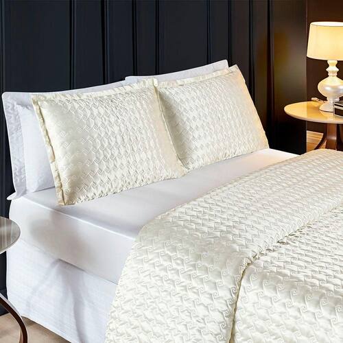 O Cobre Leito Bright é confeccionado em Cetim Charmousse, um tecido luxuoso e brilhante, com toque macio e sedoso. A Coleção Bright apresenta um padrão totalmente matelado.