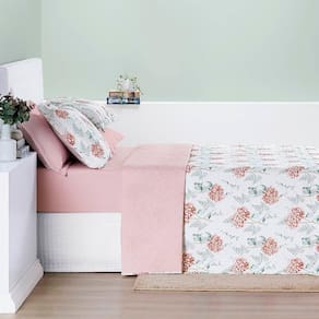 A Coleção ;Cotton Select vem ;proporcionar charme e elegância para seu quarto ;é ideal para compor uma decoração de quarto romântica e delicada. O Cobre leito é dupla face, sendo uma face ;estampada ;e a ;outra ;lisa, ;junto de porta travesseiros ;estampados. Todos os itens são fabricados com tecido ;200 fios 80% algodão / 20% poliéster que recebe um tratamento especial para ser macio ao toque.