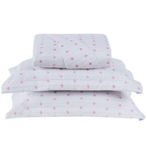 Cobre Leito Casal Padrão Decor Bordado 200 Fios 3 Peças - Branco/Pink - Hipercal 100% Poliéster - Única