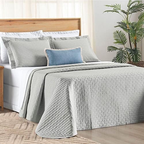 Cobre Leito Casal Padrão Verity 200 Fios Bordado 3 Peças Cinza