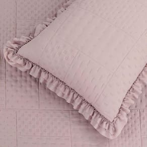 Acompanha porta travesseiros coordenadas com o mesmo acabamento e babados, garantindo uma composição harmoniosa.