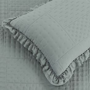 Acompanha porta travesseiros coordenadas com o mesmo acabamento e babados, garantindo uma composição harmoniosa.