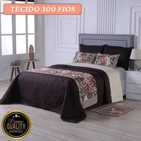 Conteúdo do Pacote: - 1 Cobre leito Casal/Queen 2,60 x 2,40 - 2 Capa de Almofada 0,75x 0,60 - 2 Porta Travesseiro 0,70 x 0,50 - 1 Peseira 1,20 x 0,40