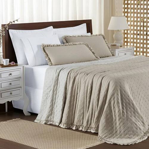 Com toque macio, caimento impecável e acabamento de luxo, ele não é apenas um cobre leito: é a peça que transforma o seu quarto em um refúgio de aconchego e elegância. Cada detalhe transmite cuidado, trazendo beleza e conforto para sua rotina.