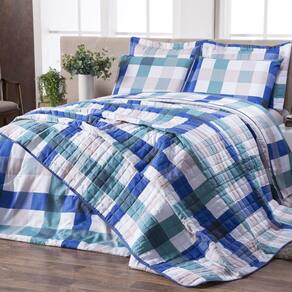 Cobre Leito Classic Solteiro 02 Peças Xadrez Aqua Obrigado por visitar nossa loja, temos os melhores produtos de cama, mesa e banho para sua casa com a melhor qualidade e variedade em diversos modelos, todos são rigorosamente revisados.Contém: 01 Cobre leito estampado com 1,75m x 2,45m 01 Porta travesseiro estampado com 0,70m x 0,50mComposição:Tecido 160 fios 82% Algodão 18% Poliéster Enchimento: Manta resinada 100% PoliésterIdeal para cama solteiro. Forrado em tecido.As fotos são ilustrativas, as cores podem variar de acordo com cada monitor e não representam todas as peças que compõem na foto do produto.