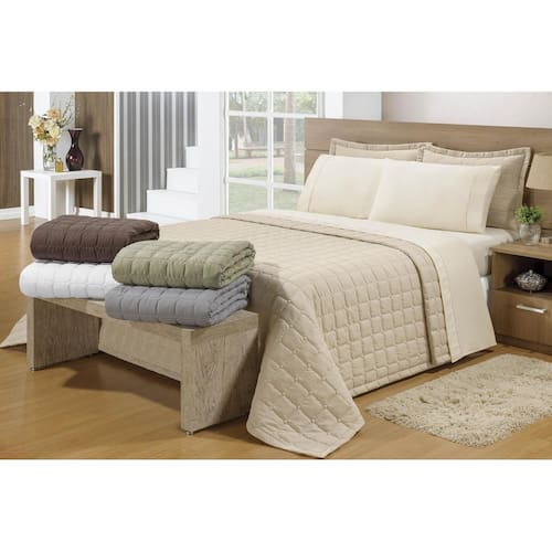 O cobre leito Soft por ter seu matelado exclusivo, deixa o produto elegante e fino, dando ao ambiente um charme exclusivo. Ref:142253 cobre leito soft solteiro 2 Pçs. Contém: 01 cobre leito 2,60m x 1,90m; 01 porta travesseiro 70x50cm . Composição: tecido superior 100% poliéster; manta 100% poliéster; tecido inferior 50% algodão / 50% poliéster. Imagens meramente ilustrativa. As cores do produto podem variar de acordo com cada modelo de monitor. contra defeitos de fabricação. Marca: Não Informado Ean: 7908123855145