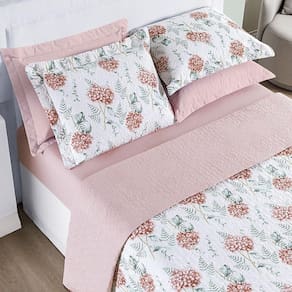 Cobre Leito Cotton Select Casal Padrão 03 Peças - Hortência O Cobre Leito Cotton Select traz um toque de elegância e tranquilidade. Com cores e estampas modernas, ele é totalmente matelado e confeccionado em Percale 200 Fios (80% Algodão e 20% Poliéster), proporcionando conforto natural e uma sensação suave ao toque. O conjunto é dupla face e permite variação no visual: de um lado uma estampa exclusiva que adiciona personalidade ao ambiente, do outro, uma face lisa e elegante. Esta coleção está disponível em quatro estampas: Forest, Hortência, Quadri e Protea , e acompanha dois porta travesseiros com aba americana para um toque charmoso. Produto composto por: 01 Cobre Leito Padrão: 2,40m x 2,20m 02 Porta Travesseiros: 80cm x 55cm, Medida útil: 70cm x 50cm