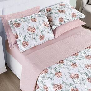 Cobre Leito Cotton Select King 03 Peças - Hortência O Cobre Leito Cotton Select traz um toque de elegância e tranquilidade. Com cores e estampas modernas, ele é totalmente matelado e confeccionado em Percale 200 Fios (80% Algodão e 20% Poliéster), proporcionando conforto natural e uma sensação suave ao toque. O conjunto é dupla face e permite variação no visual: de um lado uma estampa exclusiva que adiciona personalidade ao ambiente, do outro, uma face lisa e elegante. Esta coleção está disponível em quatro estampas: Forest, Hortência, Quadri e Protea, e acompanha dois porta travesseiros com aba americana para um toque charmoso. Produto composto por: 01 Cobre Leito King: 2,80m x 2,40m 02 Porta Travesseiros: 80cm x 55cm | Medida útil: 70cm x 50cm