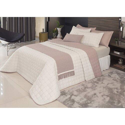 Nossa loja vem para trazer o que há de melhor em produtos para sua roupa de cama, mesa e banho, sempre preocupada em levar a maior qualidade de produtos e atendimento até você, nosso cliente e amigo.Cobre Leito Casal Queen 5 peças01 Cobre Leito Dupla Face 2,40m(comprimento) x 2,60m(largura)02 Porta Travesseiros (matelados com abas) 75cm x 55cm01 Almofada Tear com enchimento 60cm x 30cm01 Peseira de Tear 2,10m(comprimento) x 45m (largura)Composição: Tecido Face 1 e 2 : Percal de Poliéster 100%.Almofada e Peseira: Tear 100% algodão. As fotos são meramente ilustrativas. As cores podem variar de acordo com cada monitor e não representam todas as peças que compõem na imagem do produto.Fique atento á descrição e ao título do produto.