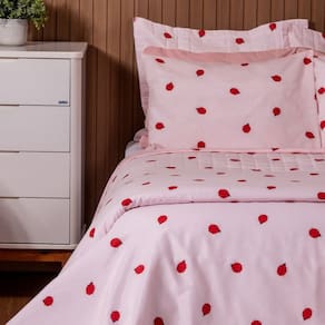 Obrigado por visitar nossa loja, temos os melhores produtos de cama, mesa e banho para sua casa com a melhor qualidade e variedade em diversos modelos, todos são rigorosamente revisados.Contém:01 Cobre leito estampado com 1,75m x 2,45m01 Porta travesseiro estampado com 0,7m x 0,5mComposição:Tecido 150 fios 67% Algodão 33% PoliésterTecido de baixo (forro) 100% poliesterEnchimento: Manta resinada 100% PoliésterIdeal para cama solteiro. Forrado em tecido.As fotos são ilustrativas, as cores podem variar de acordo com cada monitor e não representam todas as peças que compõem na foto do produto.Muito obrigada pela sua visita e boas compras.