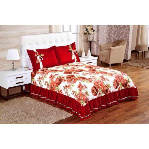 Tamanho Generoso: Com dimensões impressionantes de 2,35 metros de largura por 2,30 metros de comprimento, este cobre leito é perfeito para camas casal, cobrindo a cama de ponta a ponta e adicionando um toque de requinte ao seu ambiente.