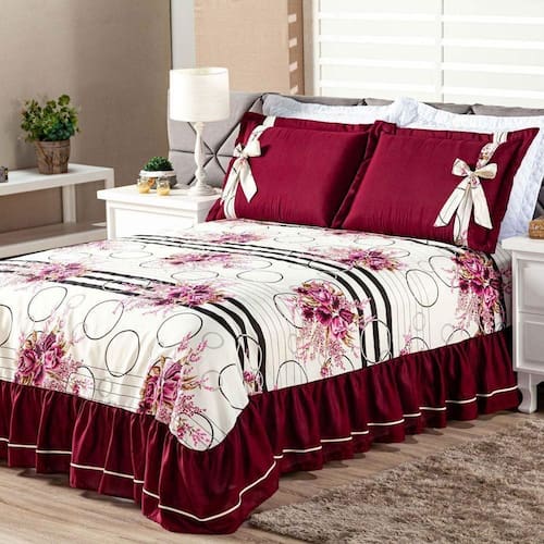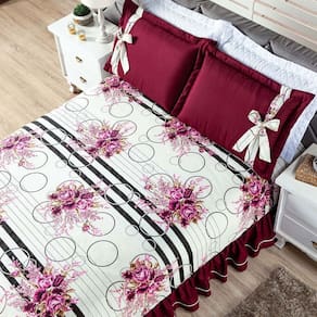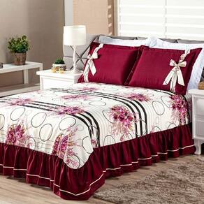 Cobre Leito Isabela Queen 3 Pecas - Floral Vinho