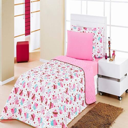 A Linha Kids traz cor e descontração ao quarto dos pequenos com o cobre leito estampado e itens lisos. Confeccionado em tecido superior em 60% algodão e 40% poliéster, tecido inferior 100% poliéster e enchimento em 100% poliéster.Composição: 01 Cobre leito 2,10m x 1,60m01 Porta travesseiro 65cm x 45cm01 Lençol com elástico para colchão 1,88m x 88cm x 20cm01 Fronha 70cm x 50cmGênero - Menina