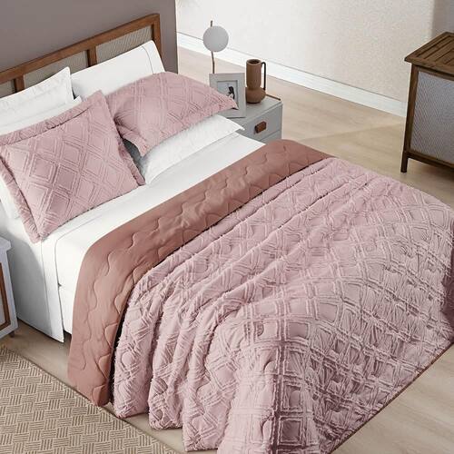 Cobre Leito King Harmonia 3 Peças Dupla Face - Rosê Explore o luxo e a sofisticação com o Cobre Leito Harmonia em Micropercal de 300 fios, uma peça excepcional que eleva o conforto do seu quarto a patamares superiores. O tecido de micropercal, com sua trama fina e suave, proporciona uma experiência de toque irresistível, envolvendo você em uma sensação de maciez inigualável.