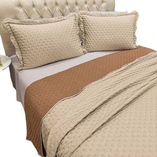 Cobre Leito King Vitoria Dupla face 3pç 100% Poliéster - Damasc - Bege