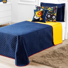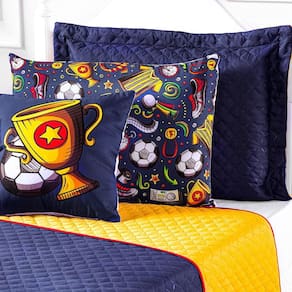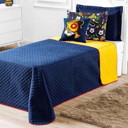 Cobre leito queen 7 peças marinho/amarelo coleção futebol o kit coleção futebol é um show de bola e a escolha perfeita para quem é apaixonado por esse tema. Sendo um dos esportes mais famosos e mais adorados do planeta, elementos como a atmosfera dos estádios, a animação da torcida, a arquibancada lotada, a paixão pelo seu time, e arte na ponta dos pés dos jogadores foram os pontos de partida para a criação colorida e cheia estampa futebol - design exclusivo da lux enxovais. Essa coleção conta com duas cores lindas e modernas que fará o dono do quarto se sentir um verdadeiro campeão. Com a proposta de alegrar o ambiente e proteger a cama, esse kit é confeccionado em tecido 100% poliéster, sendo dupla face - o que permite ser utilizado dos dois lados e assim ter duas versões com o mesmo produto - e matelassado com a tecnologia ultrassônica. O porta travesseiro e a almofada são impressas com a tecnologia digital, garantido assim uma alta definição da estampa. O kit coleção futebol queen é composto por 01 cobre leito dupla face com vira, 02 porta travesseiros dupla face com zíper, 02 fronhas com estampa digital e zíper e 01 almofada com estampa digital e zíper e 01 refil de almofada. Conteúdo da embalagem - 01 cobre leito - 2,60 m x 2,50 m - 02 porta travesseiros - 65 cm x 45 cm - 02 fronhas estampadas - 65 xm x 45 cm - 01 capa de almofada - 40 cm x 40 cm - 01 refil de almofada - 40 cm x 40 cm