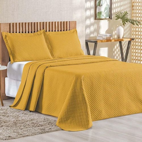 Cobre Leito Queen Bouti Mavie Geométrico 180 Fios 3 Peças - Açafrão