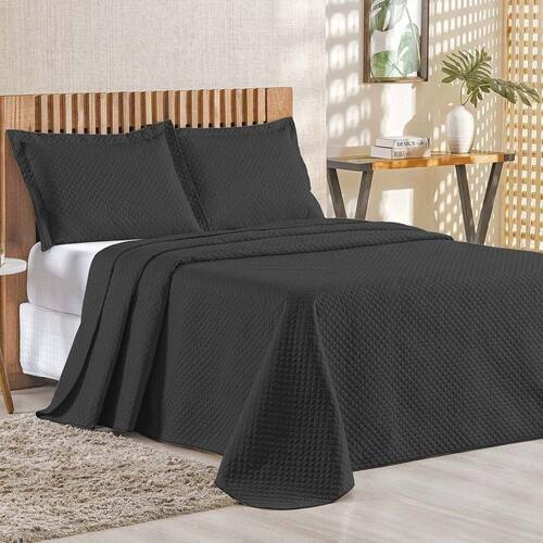 Cobre Leito Queen Bouti Mavie Geométrico 180 Fios 3 Peças - Preto