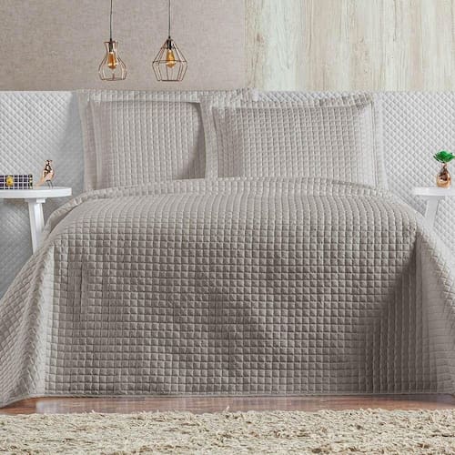 Versatilidade e visual moderno são as principais características do cobre leito Plata. Desenvolvido pensando na praticidade na hora de arrumar a cama mas sem deixar de lado a qualidade e conforto que esse produto oferece. O conjunto é composto por um cobre leito dupla face ;(ambos os lados da mesma cor) ;e dois portas travesseiros em percal 200 fios super macio para te inspirar na hora de fazer sua composição de cama posta. Todas as peças são matelassadas em formato pastilhado.