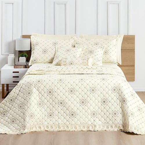 Feito com a mais pura fibra de algodão, este cobre leito oferece não apenas uma sensação suave e macia ao toque, mas também proporciona uma durabilidade excepcional.