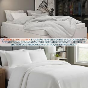 Cobre Leito Queen Size Algodão Lauryn Bordado Super Luxuoso Cor: OFF WHITE Transforme seu quarto em um refúgio de sofisticação e conforto todos os dias. Este Cobre Leito Queen Size Lauryn é confeccionado em algodão de alta qualidade com 300 fios, trazendo maciez incomparável, durabilidade e frescor ao toque. O bordado refinado adiciona um charme sofisticado, perfeito para quem deseja compor um quarto elegante sem abrir mão do conforto. Imagine deitar-se em um cobre leito que parece ter saído de um hotel 5 estrelas. O toque suave do algodão, o brilho delicado do bordado e a sensação de luxo transformam seu descanso em uma experiência única. É como vestir sua cama com elegância e aconchego. Além da beleza e do conforto, o Cobre Leito Lauryn é fácil de cuidar, resistente a lavagens e com caimento impecável sobre a cama. O tamanho Queen é ideal para garantir cobertura total e uma aparência sempre sofisticada no quarto. Contém: 1 Colcha - 2,60m x 2,40m 2 Porta travesseiros - 70cm x 50cm Composição: Tecido:300 FIOS 1. O cobre leito acompanha porta-travesseiros Sim, o conjunto já vem com porta-travesseiros no mesmo design, garantindo a harmonia do visual. 2. O tecido amassa com facilidade Não, o algodão 300 fios possui caimento elegante e menos propenso a amassados, mantendo sua cama sempre arrumada. 3. Ele é indicado para todas as estações do ano Sim, pode ser tanto no verão quanto no inverno, trazendo conforto em qualquer clima. 4. O bordado desfia com o tempo Não, é produzido com técnica reforçada que garante durabilidade mesmo após várias lavagens. 5. É um produto hipoalergênico Sim, o algodão natural é seguro e ideal para pessoas com pele sensível ou alergias. Durma com o luxo que você merece Garanta já o Cobre Leito Lauryn e transforme suas noites em verdadeiras experiências de conforto e sofisticação. Marca: Não Informado