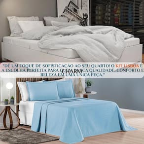 Contém: 01 Cobre Leito 2,60m X 2,40m 02 Portas Travesseiros 70cm x 50cm