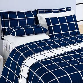 Cobre Leito Queen Square Micropercal 200 Fios 3pç - Azul