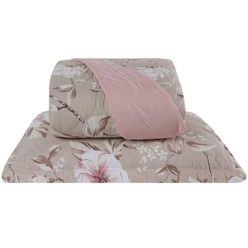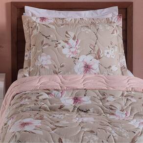Cobre Leito Solteiro Colori Dupla Face 200 Fios Estampado 2 Peças - Jardim Bege - Única