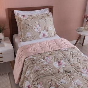 Cobre Leito Solteiro Colori Dupla Face 200 Fios Estampado 2 Peças - Jardim Bege