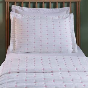 O cobre leito Decor é uma ótima opção de enxoval elegante e sofisticado. O cobre leito é todo bordado, com acabamento em toda volta do cobre leito em viés, junto com porta travesseiro bordado na parte frontal e liso na parte traseira com debrum (abas) em 3 lados e fechamento modelo envelope na parte traseira que impede que seu travesseiro saia de dentro da peça. Todas as peças do kit são fabricadas em tecido percal 200 fios 100% poliéster que possui maciez incomparável e garantia contra desbotamento e tecnologia antipilling que impede a formação de bolinhas mesmo após diversos usos e lavagens.