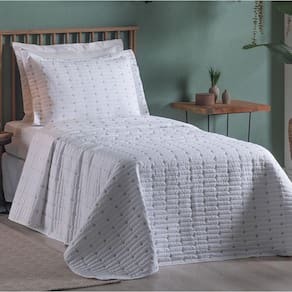 O cobre leito Decor é uma ótima opção de enxoval elegante e sofisticado. ;O cobre leito é todo bordado, com acabamento em toda volta do cobre leito em ;viés, ;junto com ;porta ;travesseiro ;bordado ;na parte frontal e liso ;na parte traseira com debrum (abas) em 3 lados e fechamento modelo envelope na parte traseira que impede que seu travesseiro saia de dentro da peça. ;Todas as peças do kit são fabricadas em tecido percal 200 fios 100% poliéster que possui maciez incomparável e garantia contra desbotamento e tecnologia antipilling que impede a formação de bolinhas mesmo após diversos usos e lavagens.