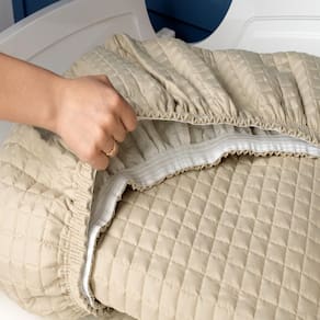 Dicas de lavagem. É aconselhado ler a etiqueta do produto para verificar quais as instruções do fabricante para lavagem e secagem. Em caso positivo, prefira usar sabão neutro e água morna para que o tecido do cobre-leito não seja danificado durante a lavagem.